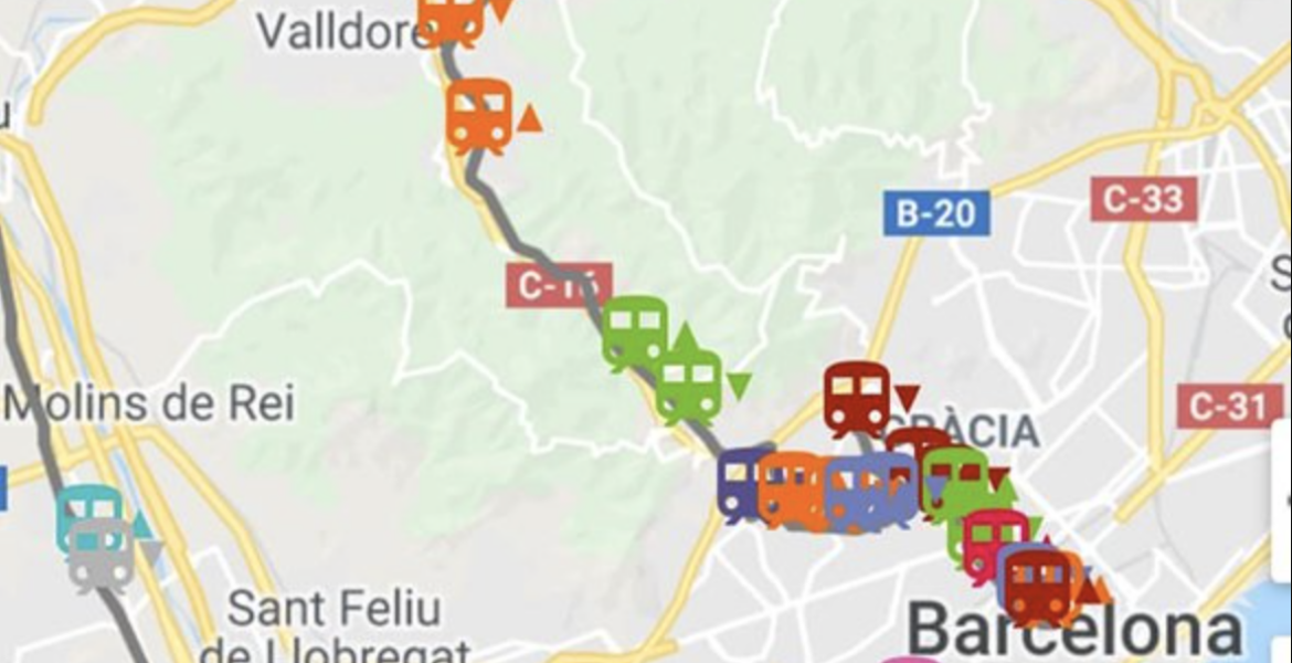 · Visualización en tiempo real: Posicionamiento en directo de los trenes comerciales de las líneas Barcelona-Vallès y Llobregat-Anoia.
